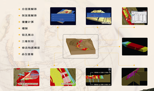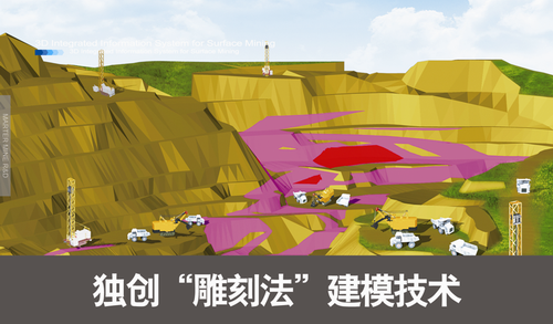 突破業(yè)界公認(rèn)的三維實(shí)體建模難題,率先采用世界首創(chuàng)“雕刻法”三維實(shí)體建模技術(shù),以三角網(wǎng)格精確描述具有復(fù)雜內(nèi)部結(jié)構(gòu)(如斷層、褶皺等地質(zhì)結(jié)構(gòu))的礦石和采掘現(xiàn)狀邊界,采用塊體模型精準(zhǔn)描述礦體品位分布。