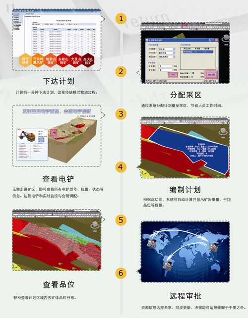 以三維實(shí)體模型為基礎(chǔ),結(jié)合采礦生成工藝流程,完成礦山生產(chǎn)年、季度、月份的采礦計(jì)劃編排,同時(shí)評價(jià)計(jì)劃過程中的質(zhì)量指標(biāo),實(shí)現(xiàn)從公司下達(dá)計(jì)劃、部門落實(shí)生產(chǎn)部位,計(jì)劃審批等全過程閉環(huán)管理,資源同步共享,數(shù)據(jù)實(shí)時(shí)更新。