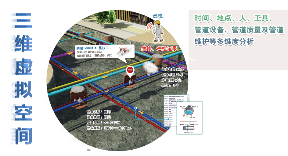 ■ 三維虛擬空間描述全信息:真實(shí)展現(xiàn)管網(wǎng)分布,直觀體現(xiàn)地下管網(wǎng)相互之間在地面及地下的立體關(guān)系;多方位,多視角查看管線的地理關(guān)系。