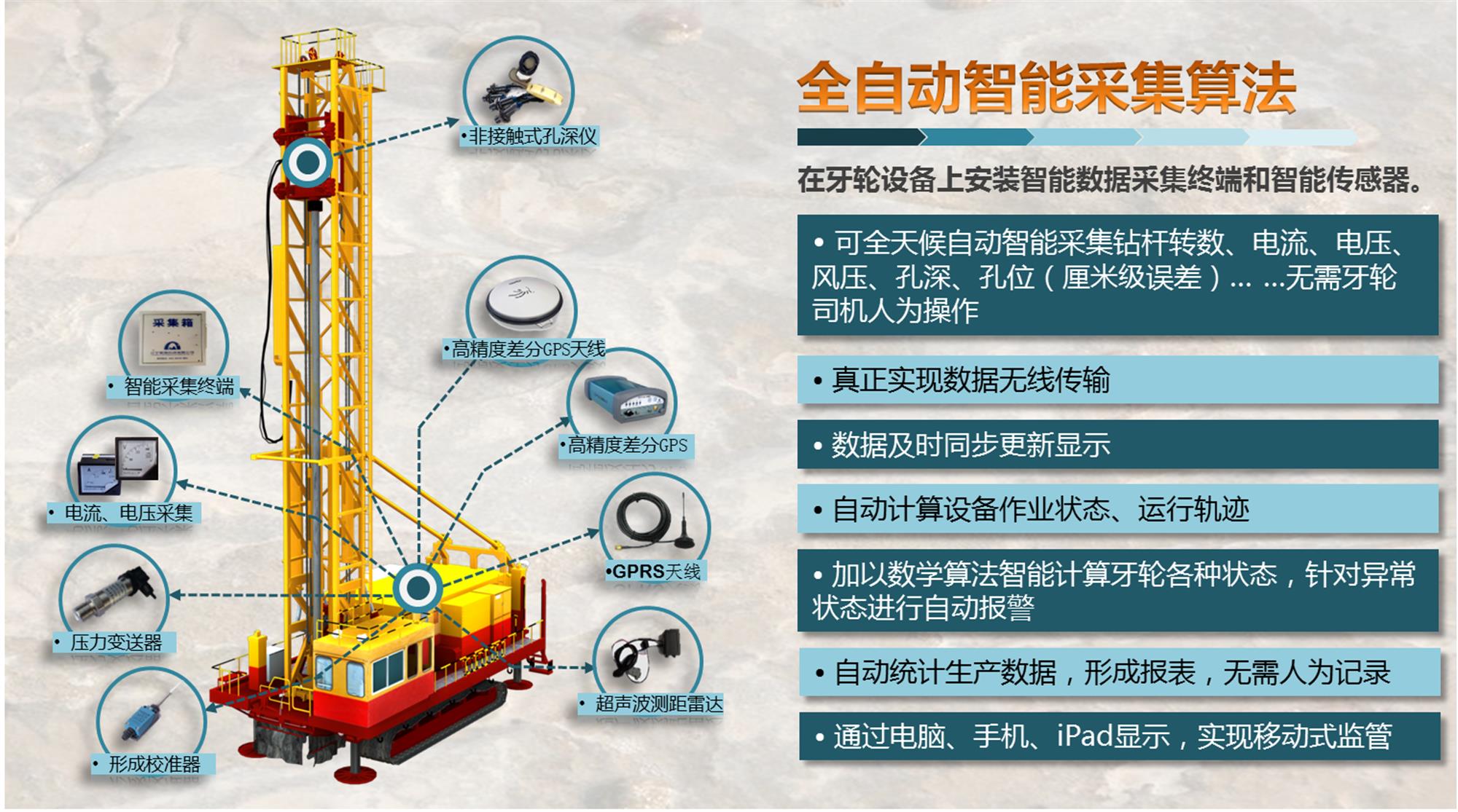 基于“43211”理論的《聚進牙輪生產智能管控系統》以聚進露天三維采礦綜合信息系統為基礎,引進高精度智能測量設備,提高測量精度,數據采集及時準確,極大提高生產工作效率。徹底解決礦山測量人手不足,戶外測量工作量大的頑固難題,極大提高測量數據的單位采集率,建立公司級數據應用交換平臺,支持數據和圖像同時傳輸,地質模型實時更新、資源信息遠程共享,實現過程控制數字化,可使操作者直觀立體地感知生產過程及現場狀況。