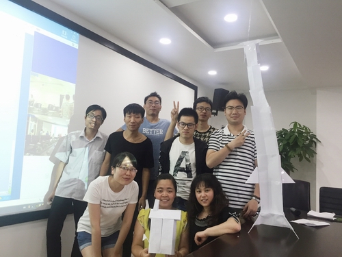 “合力造榙”活動(dòng)是各個(gè)團(tuán)隊(duì)要用有限的資源(A4紙、小膠帶、剪刀等)在規(guī)定的時(shí)間內(nèi),建造一座擁有四個(gè)側(cè)面堅(jiān)固且美觀的高塔。以符合要求的塔中最高者為勝。此活動(dòng)看起來(lái)簡(jiǎn)單,但對(duì)團(tuán)隊(duì)的組織、協(xié)調(diào)、執(zhí)行等能力有非常高的要求。是一個(gè)非常有趣且有意義的活動(dòng)。