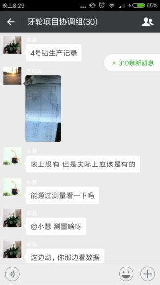 在牙輪鉆項(xiàng)目組微信工作群中,各個(gè)崗位高效率協(xié)同開展工作。
